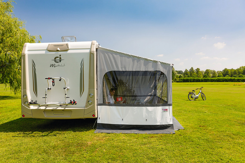 Regenfestes Seitenteil mit Fenster. Praktische Seitenwand mit großem Fenster und Bodenverlängerung. Aus wasserabweisendem, UV-beständigem Vinyl. Inkl. teleskopierbarer Rafterstange und Heringen.