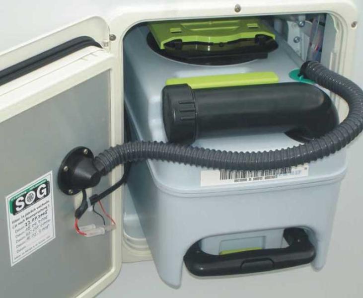 SOG-WC Entlüftung mit speziellem Absauglüfter 12 V / 0,43 W: Dieser saugt die unangenehmen Gerüche ab und leitet sie durch einen Aktivkohlefilter ins Freie. Der Einsatz von Chemie wird überflüssig. Problemloser Einbau an Dometic CT-Toiletten und andere (siehe jeweilige Ausführung).
