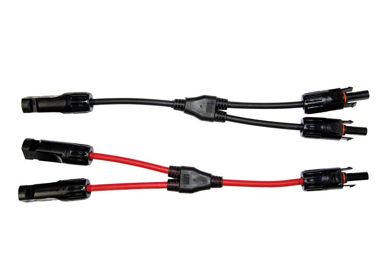 Wasserdichte MC4-kompatible Verbindungsstecker für werkzeuglose Montage und Demontage. Jeweils zwei Anschlüsse für Plus bzw. Minus; dadurch verpolungssichere Parallelschaltung möglich. Passend zu den gängigen Lilie Solarmodulen.
