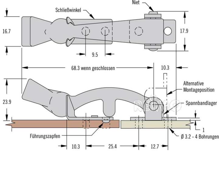 Spannbandverschluss mit Grifflasche zum Auffangen von Vibrationen oder Maßabweichungen.