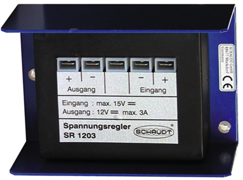 Der Spannungswandler SR 1203, umgangssprachlich auch Gleichrichter oder Überspannungsschutz genannt, wurde zur Stromversorgung aus Batterien für Freizeitfahrzeuge entwickelt. Besonders geeignet für empfindliche Geräte, die exakt 12 Volt zur Versorgung benötigen, da der SR 1203 eine stabilisierte 12V Ausgangsspannung liefert. Technische Daten: max. Strom 3A. Eingangsspannung 12-15V DC. Ausgangsspannung 12V DC*. Maße H110 x B75 x T56 mm. Gewicht 140g. (* Bei Eingangsspannung unter 13V sinkt die Ausgangsspannung entsprechend unter 12V ab.)