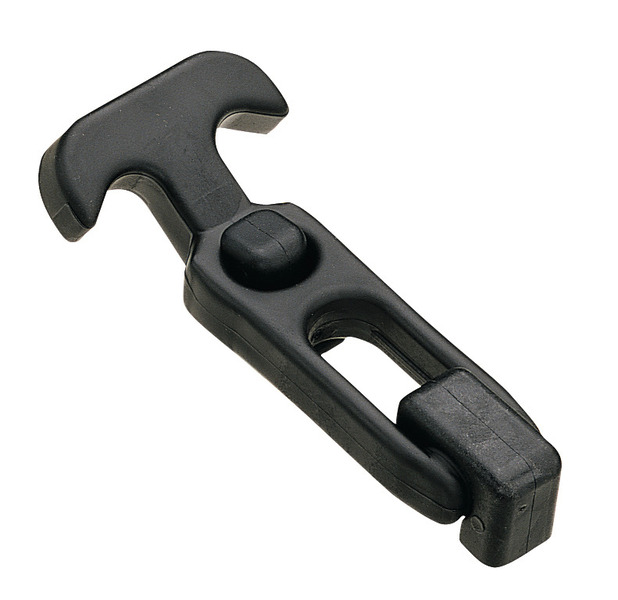 Spannverschluss aus Elastomer mit glasfaserverstärktem Nylon, schwarz, Schrauben: Edelstahl passiviert, Festigkeitsrichtwerte, mittlere Spannkraft: Mittel: 84 N, Entflammbarkeit: UL94-HB gelistet, Hinweise zur Installation: Montage von der Rückseite mit gewindeformenden Schrauben (s. Tabelle) Max. Anzugsdrehmoment der Schraube: 2.0 Nm. Montage von der Frontseite mit Schrauben M5 oder Nieten (nicht im Lieferumfang). Passender Zapfen Artikelnummer 52545