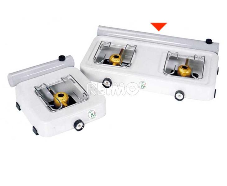 2-flammiger Spirituskocher mit 0,8 Liter Tank. Leistung 2x 1,0 kW.
