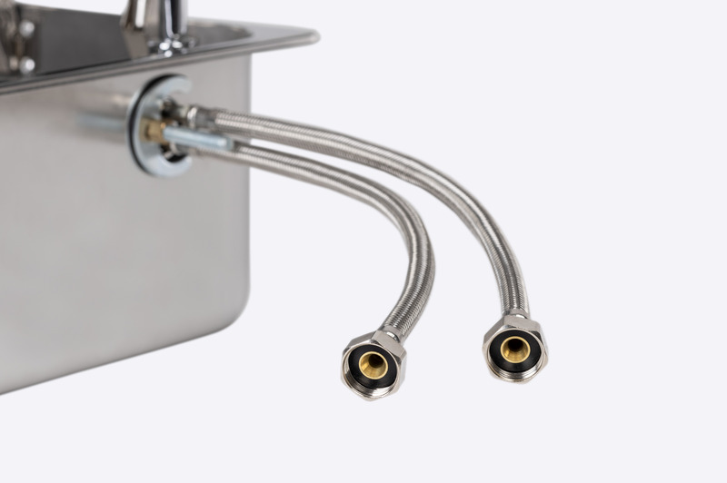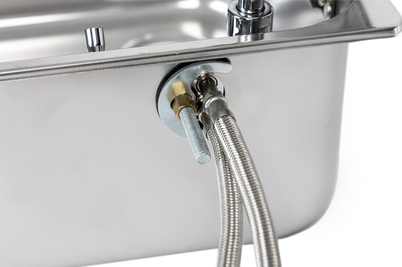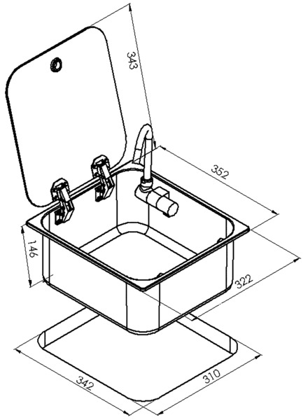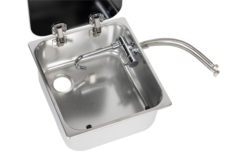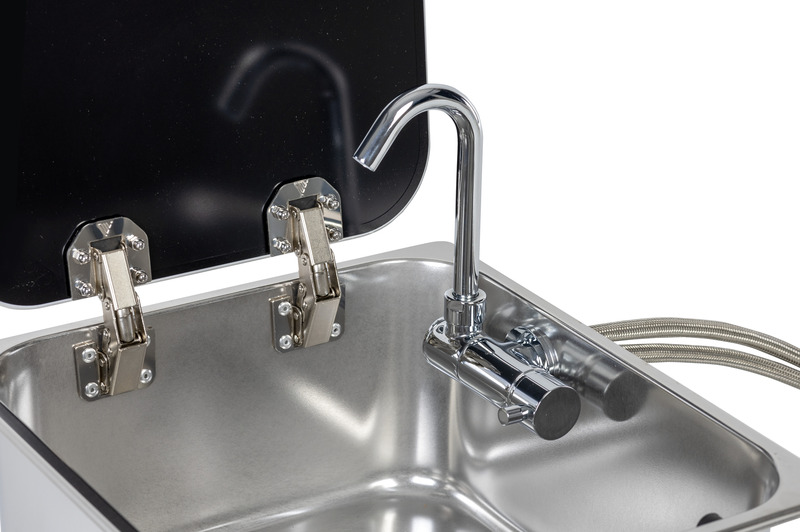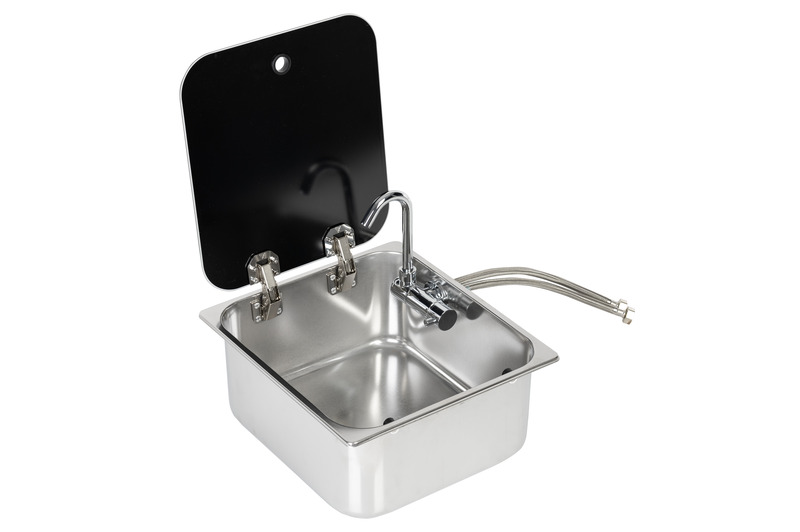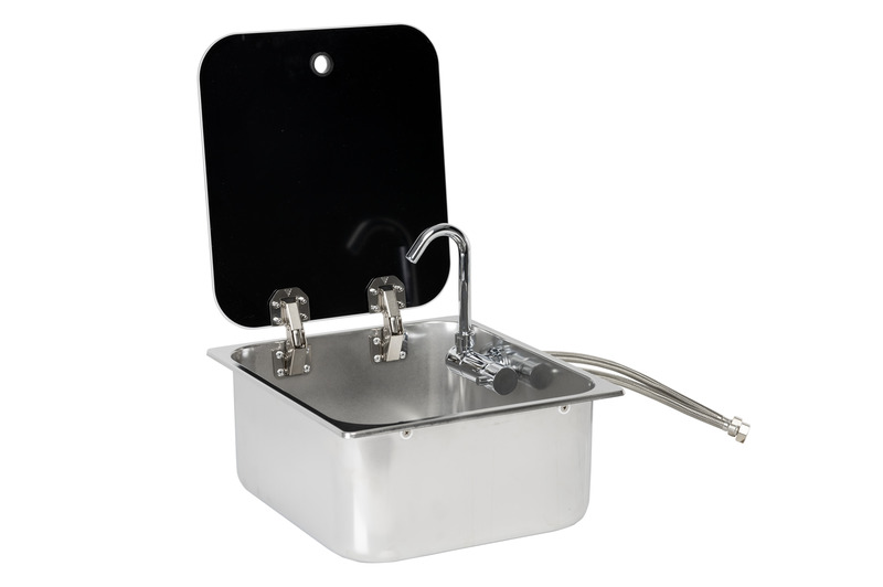 Aus Edelstahl, mit Glasabdeckung und mit Wasserhahn