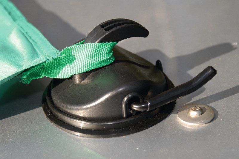 Schraubenlose Befestigung von Buszelt, Sonnensegel, Vordach uvm. Der Sauger wird einfach auf einer glatten, sauberen und trockenen Fahrzeugfläche angesetzt und der Hebel umgelegt. Durch Umlegen des Hebels wird ein sehr starkes Vakuum erzeugt. Die Tragkraft beträgt bis zu 10 kg. Klappsauger aus Kunststoff mit stabilem Kunststoffhaken.