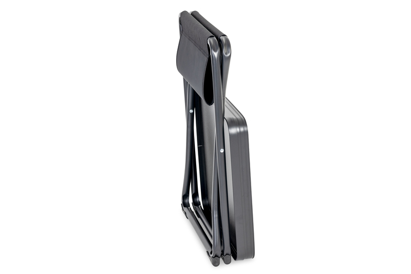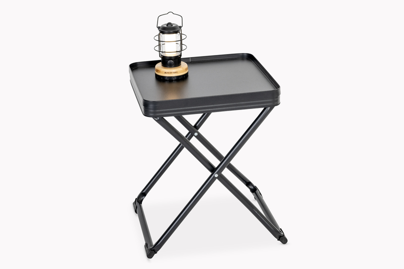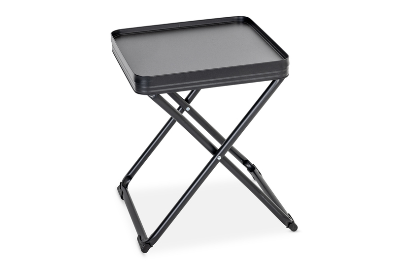 Der Klapphocker TERAMO hat eine abnehmbare Tischplatte mit umlaufendem Rand (Höhe 2 cm), die auch als Tablett genutzt werden kann.