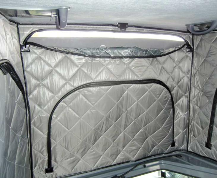 Montage innen: mit Druckknöpfen/Klettband. Isoliert im Sommer und Winter. Speziell geeignet für Zeltbalg-Isolierung in Reimo Schlafdach VW T5/6 kurzer Radstand, hinten hochstellbar.