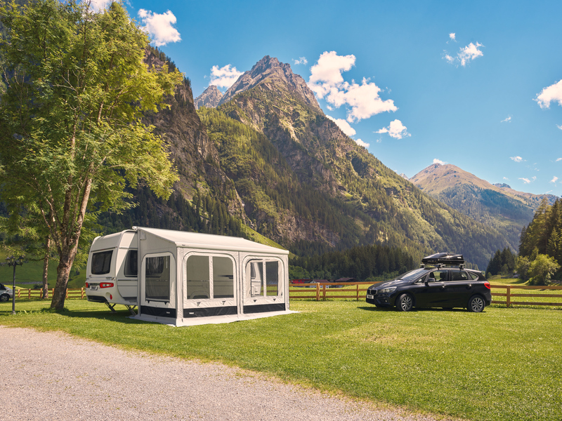 Das einfach aufzubauende Markisenzelt erlaubt eine fantastische Aussicht und sorgt für belüfteten Komfort.