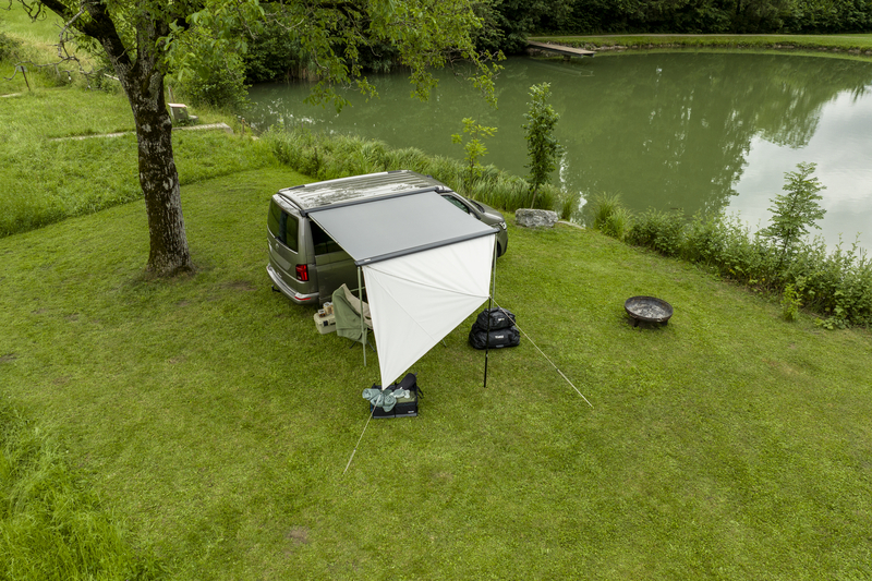 Erweitern Sie den Lebensraum außerhalb der Markise Ihres Vans und genießen Sie mehr Privatsphäre. Das atmungsaktive, wasserbeständige Material bietet Privatsphäre und Schutz vor Sonne und Regen. Die dreieckigen Paneele mit hochwertigen Reißverschlüssen und Kedern lassen sich für eine perfekte Einrichtung unterschiedlich kombinieren.