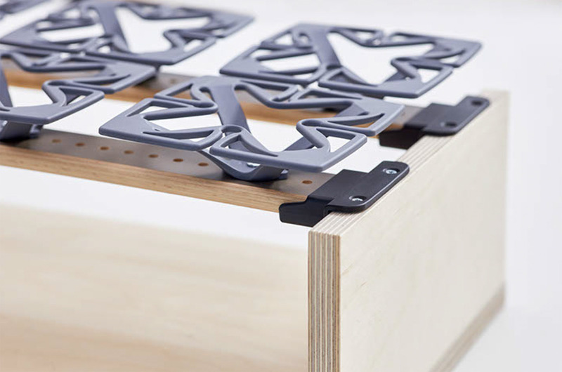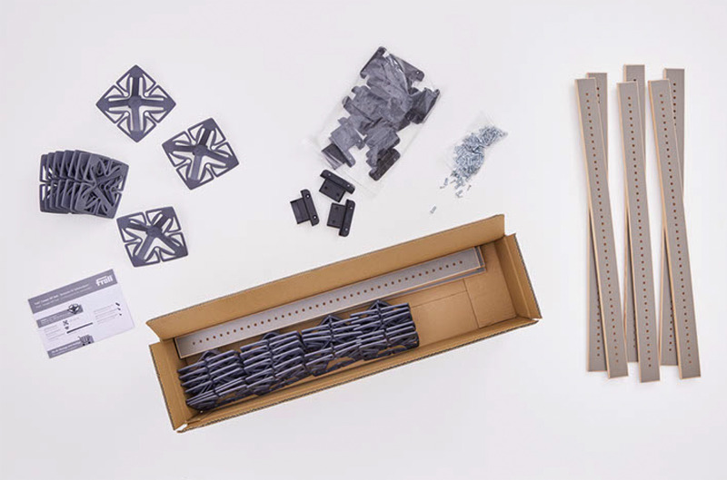 Im DIY-Set sind elf gebogene Federleisten beinhaltet. Das Lattenrost, bestehend aus einzelnen Federleisten, sägst du ganz einfach auf die von dir benötigte Länge zu. Anschließend befestigst du die zugesägten Federleisten in den Leistenaufnahmen. Diese verbindest du dann mit den beinhalteten Schrauben mit deiner Bettkonstruktion. Die Löcher, in die du die Froli Federn steckst, sind auf den Federleisten vorgebohrt. Hier kannst du variieren und dir dein bestes Schlafgefühl schaffen. Dabei gilt, je mehr Federn du verwendest, desto fester wird deine Liegefläche. Steckst du also 3 Federn auf die Latte, schläfst du weicher als mit fünf Federn auf der Latte. Matratze drauflegen und schon ist dein Froli-Bett fertig.