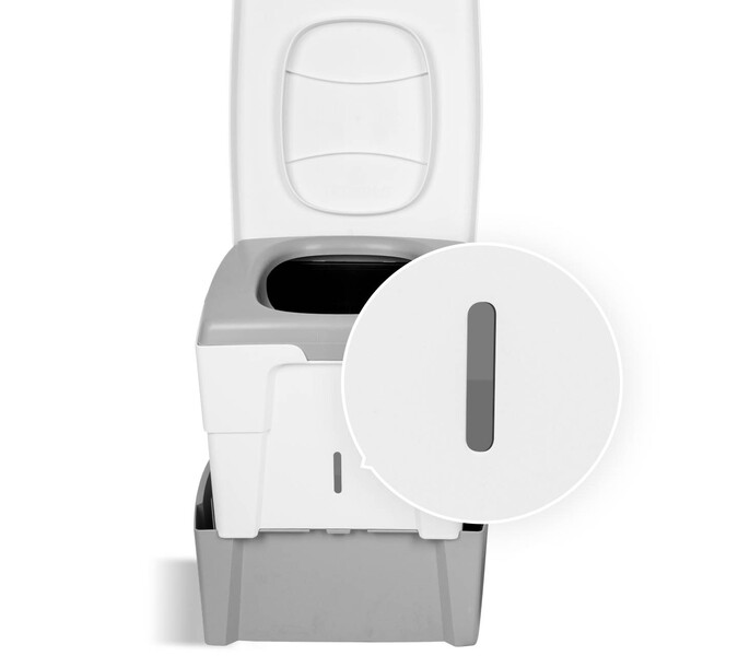 1 Toilette, 1 Feststoffbehälter, 6,5 l, 1 Flüssigkeitsbehälter, 4,6 l, 1 Rolle Inlays aus recyceltem Kunststoff (klein), 1 Nutzungsanleitung