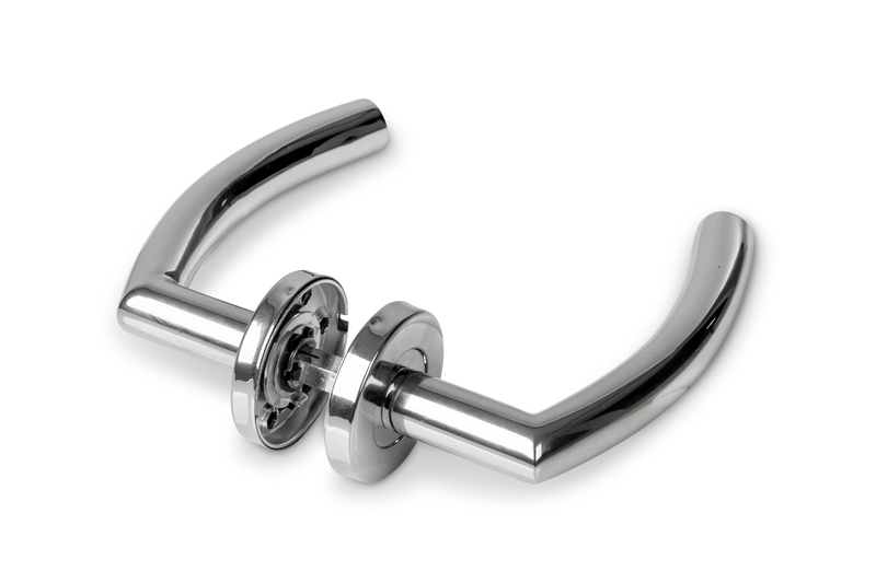 Türdrückergarnitur Sichelform, Stahl, Oberfläche: chrom (Hochglanz)