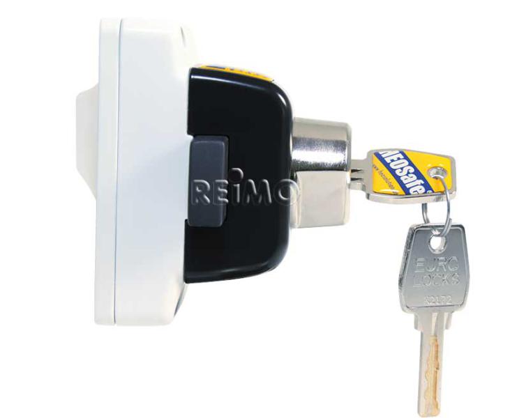 Riegelschloss für Fahrzeugtüren Ford Transit ab Bj. 2006. Mit Drehknauf, abschließbar. Befestigung am Türrahmen mit wenigen Bohrungen, incl. Befestigungsschrauben. Satz für Fahrer- und Beifahrertür.