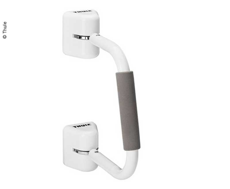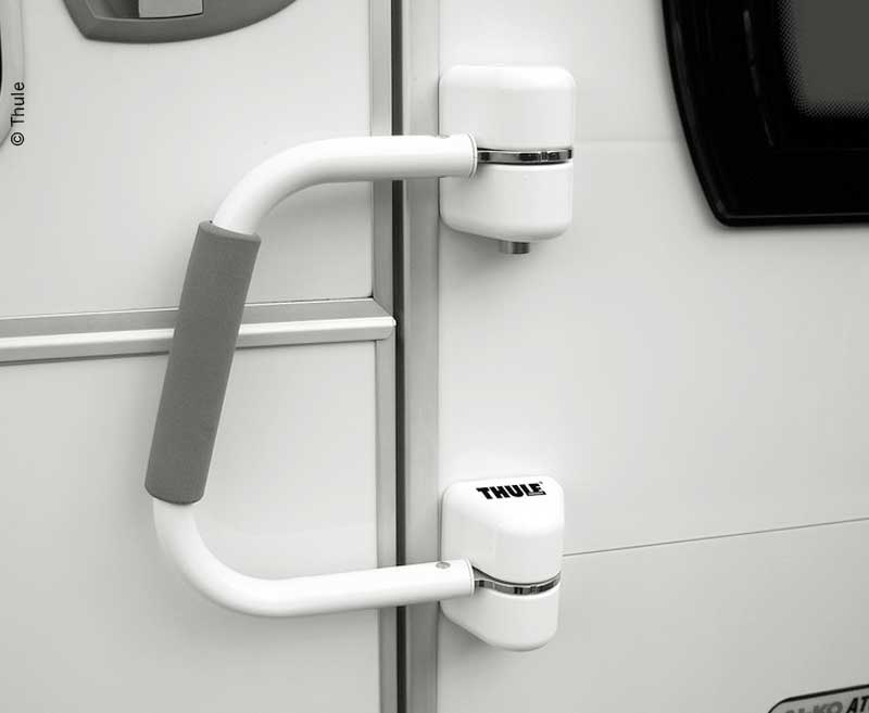 Stabiler und einfach zu nutzender Handlauf für Reisemobil- und Wohnwagen-Eingangstüren. Die Thule Security Handrail hat eine einzigartige doppelte Verriegelung mit zwei Schließzylindern für ultimative Sicherheit.
