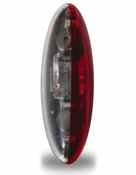 Klare Umrissleuchte mit grauem Leuchtenboden. Graue Abdeckkappen verdecken die Anschlusskabel.