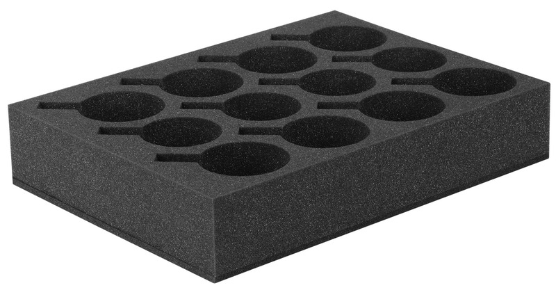 Für den sicheren Transport von bis zu 12 Tassen oder Gläsern. 12 gleichgroße Haltevertiefungen.