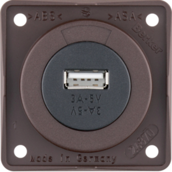 USB-Einbaubuchse, braun matt, 12V, 3A Ausgangsstrom