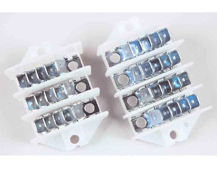 verteilerleiste ideale Hilfe für große 12/24V Elektroverteilung, jedes Fach mit 4 Anschlusssteckfahnen für 6,3mm AMP-Stecker. Material: Kunststoff, 1-fach