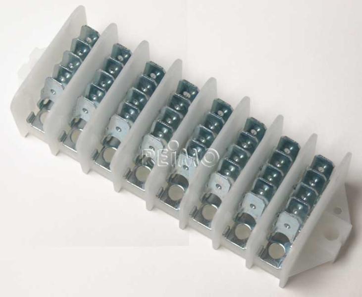 Ideale Hilfe für große 12V Elektroverteilungen, jedes Fach mit 4 Anschlusssteckfahnen für 6,3 mm AMP-Stecker. Kunststoff.