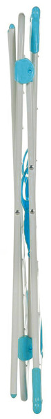 Einfacher Faltmechanismus, flach zusammenklappbar. 4 Eckkappen, an denen Bügel eingehängt werden können. Größe ca. 62x50x100 cm. Packmaß ca. 62x75x4 cm.