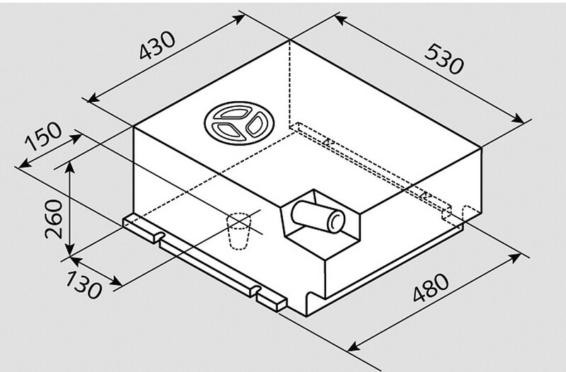 Tank für Festeinbau in Sitzbank. Mit Reinigungsöffnung 12 cm und 1 zulaufstutzen 4 cm. Unterseite mit Entleerungsstutzen zur Wagenboden-Durchführung. Verschlossen durch 1/2″ Gewindestopfen auf der Tankinnenseite. Befestigung an 4 integrierten Schlitzen.