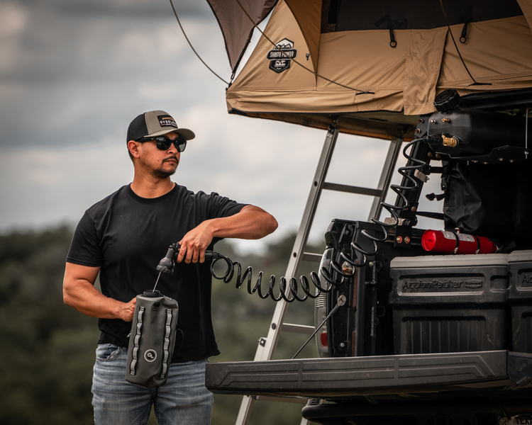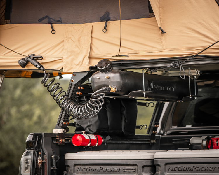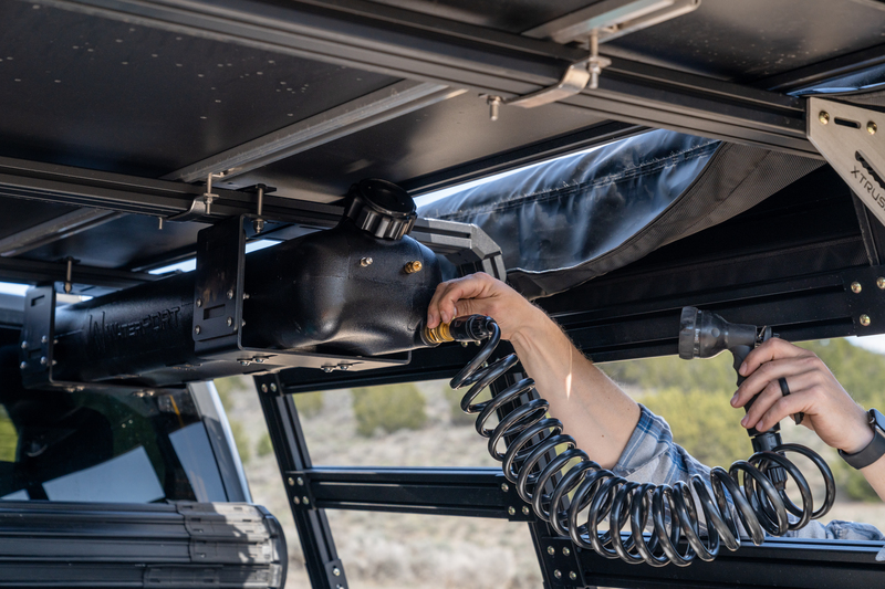 Unser größter Wassertank liefert 30 Liter Wasser selbst auf den längsten Ausflügen. Der WaterPORT 8.0 ist ideal zum Duschen, zum Reinigen und zum Spülen von Ausrüstung geeignet. Der Wassertank wird mit den passenden Halterungen für Ihren Dachträger geliefert und kann mit Plattform- oder Querträgern verwendet werden (mit zusätzlichem Zubehör). Befüllen Sie den Tank mit Ihrem Gartenschlauch oder verwenden Sie das Schrader-Ventil mit Ihrer Pumpe oder Ihrem Kompressor (bis zu 2.75 bar).