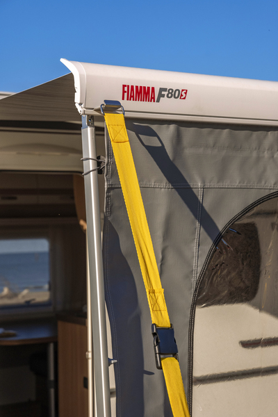 Sichere Anbringung an der Frontblende der Markisen F45s, F65s, F80s und F35pro und Caravan Store. Passt auch in die Kederschiene von Wohnwagen und Reisemobilen.
