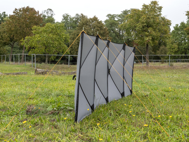 ✔ Windschutz, Stangen, Abspannleinen, Heringe, Packtasche