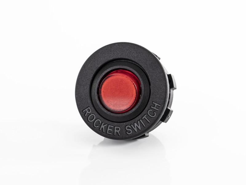 Wippschalter zum Ein- und Ausschalten mit roter Kontrollbeleuchtung.