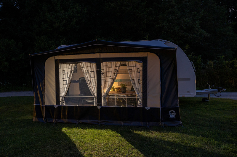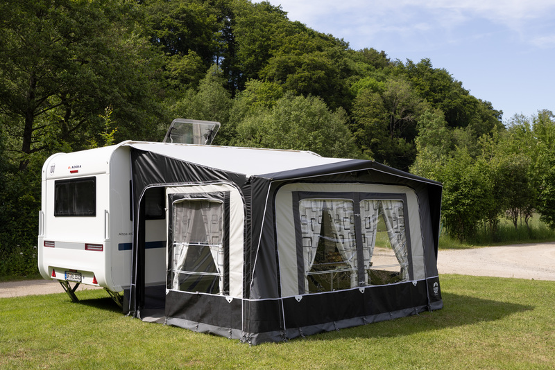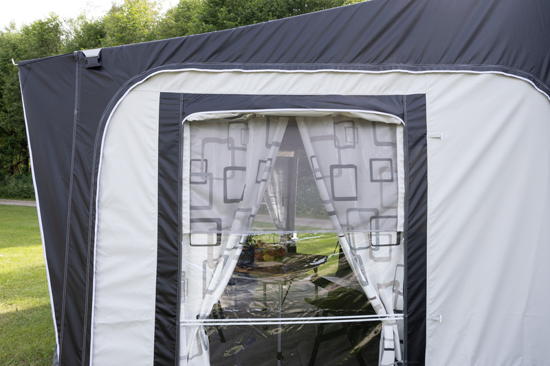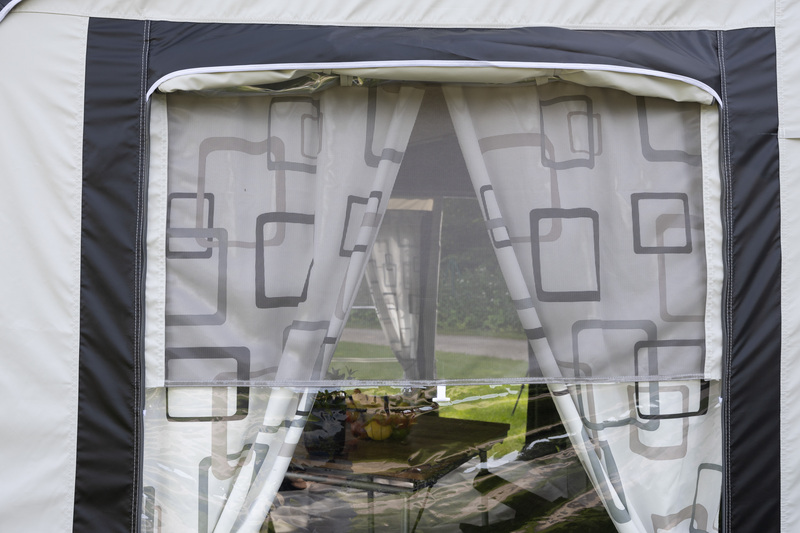 ✔ Große transparente Fenster mit Gardinen und Außenabdeckung