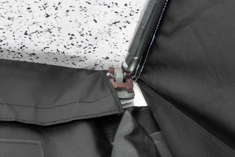 ✔ Stabiles Stahl-Gestänge mit Schnellspannvorrichtung