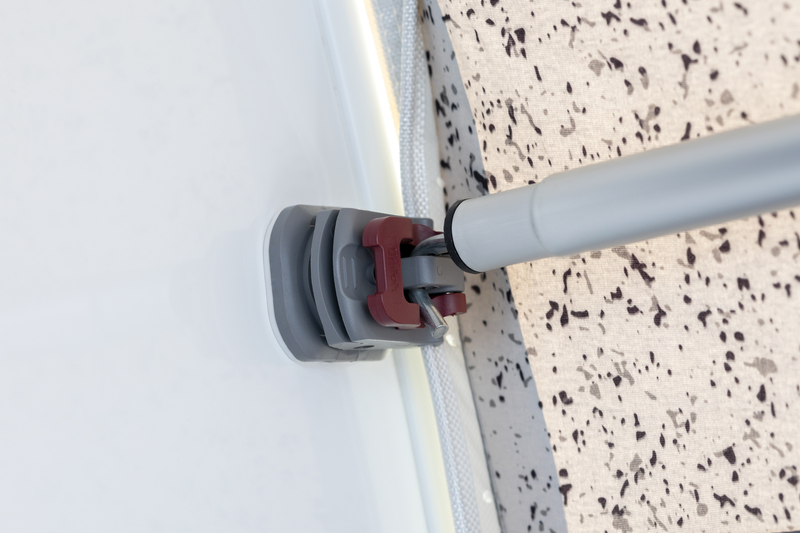 Sowohl Veranda-Stange, Windblende als auch Sturmabspannung sind im Lieferumfang enthalten.