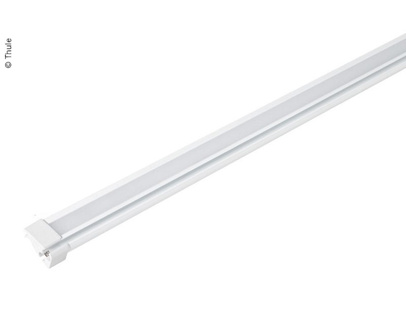 Das Profil verdeckt die Adapter und besitzt eine Schiene zur Befestigung eines Thule Markisen-Zeltes oder der Thule Organizer.
